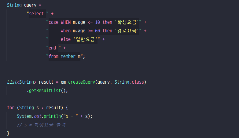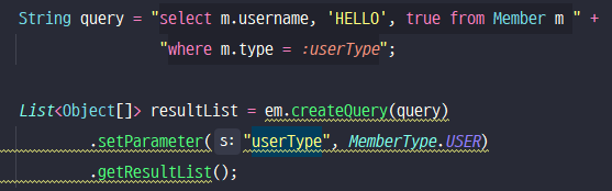 - ENUM : jpabook.MemberType.Admin (패키지명 포함하여 기재.) 파라미터 바인딩을 통해 최소화 가능.