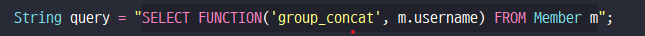 - CONCAT = 문자열 두개를 더함 ( "select CONCAT('a' , 'b') From Member m" )