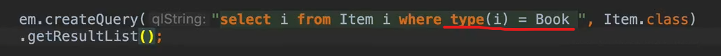 - 엔티티 타입 : TYPE(m) = Member (상속 관계에서 사용)